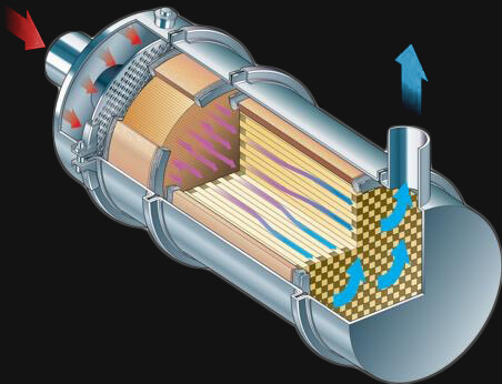 Catalytic converters are connected to the exhaust outlet pipes of cars. The platinum group metals convert carbon monoxide gas ( CO ), hydrocarbons ( HC ) and nitrogen oxides ( NOx ) released into the air into less harmful carbon dioxide ( CO2 ) and water vapours. Catalytic converters provide the breakdown of platinum and palladium hydrocarbons into water vapour and carbon dioxide. Rhodium converters nitrogen oxides and carbon monoxide into nitrogen and carbon dioxide.